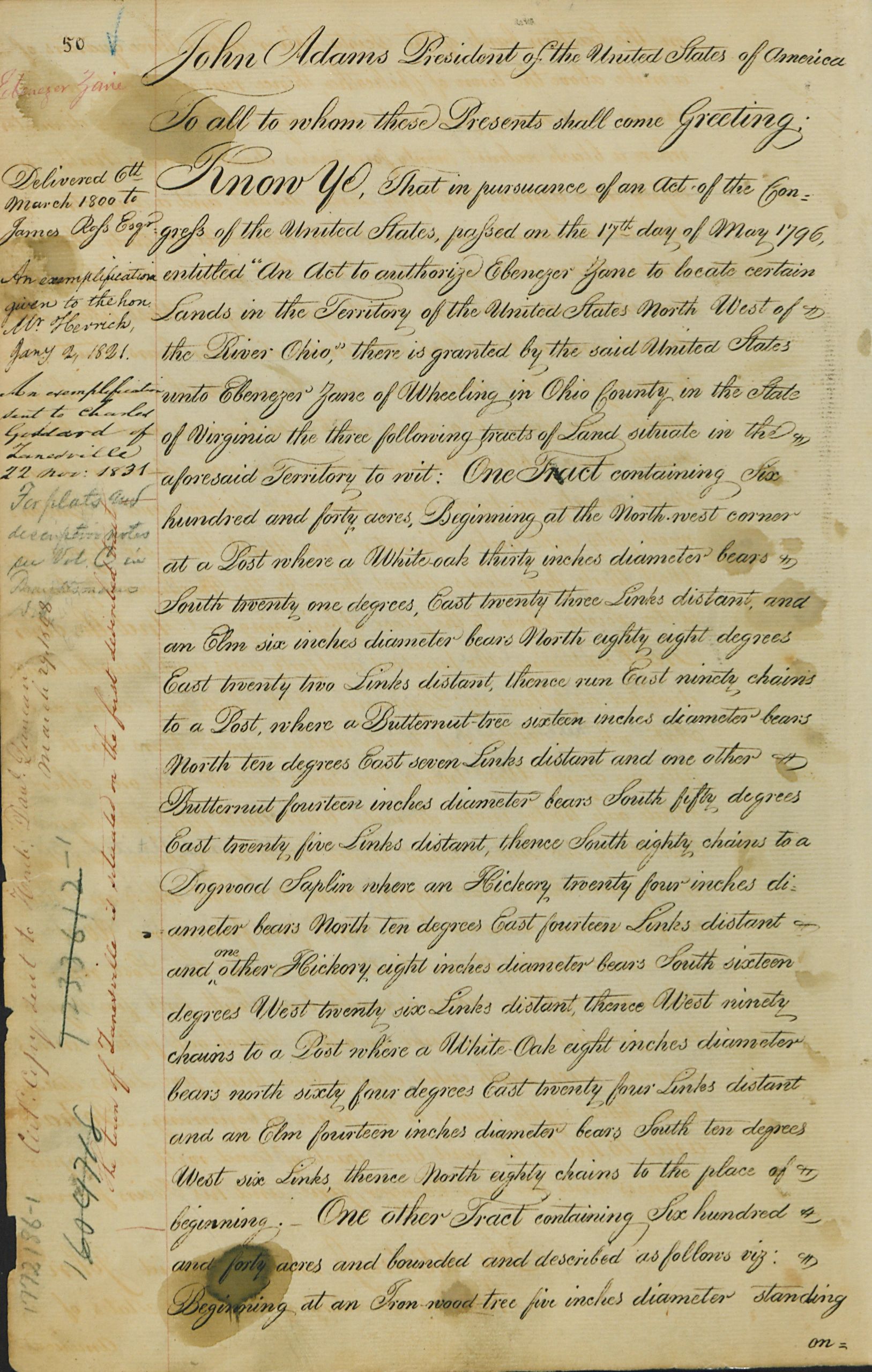 Before Zane's Trace could be completed, it began to migrate. The lack of survey would ultimately result in unreliable memories of where the original route was cut. Almost as soon as the Trace was cut, and before its length was finished, travelers began using it. As fallen trees and seasonal swamps dictated movement off of the original trail to circumvent these obstacles, the Trace began to migrate. Local land owners often took it upon themselves to improve the trace by either widening or applying logs in wet areas to create corduroyed section of road. In Putnam's letter to the Secretary of the Treasury, 5 Feb 1800, it was written "Col. Ebenezer Zane has in the course of the last year, caused the road from Wheeling to Limestone to be straightened, and otherwise improved by bridges…" By the time the first surveys of the area of the Trace were done in 1798, it is likely that the road had already been altered from its original course. While these alterations may not have been much in some areas, it can be presumed that other areas deviated considerably. Some of the surveys, post 1800, go as far as to note this migration showing Zane's "Old" Road and Zane's "New" Road on the same plat! On 13 Jun 1802, an act of congress enabled the people in the eastern portion of the Territory Northwest of the Ohio River to form a constitution and state government… This act entitled the State of Ohio to receive 3% of all land sales within its boundaries for use of road maintenance and improvement.