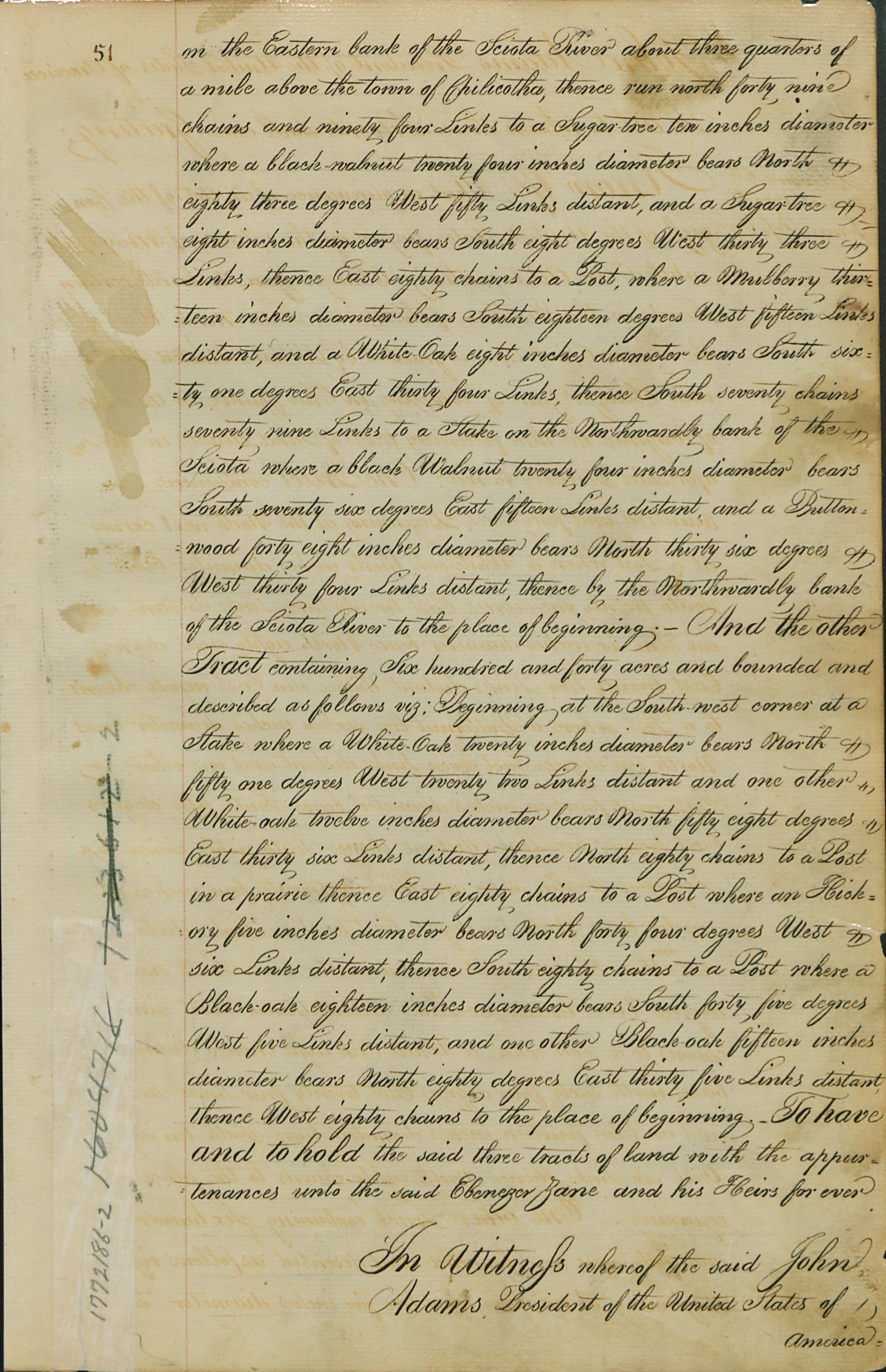 The most reliable source we have today of the location of the trace are the cadastral survey plats for areas east of the Scioto River. At the time of the survey, three sets of records were made. One set was given to the land office responsible for the district, and the others sent to the U.S. Department of Treasury, at the time responsible for all federal land transactions. One copy was for general use, the second kept as a backup. The backups are mostly missing at this time. As was directed by the Secretary of the Treasury to the Surveyor General, all details of the land were noted and detailed notes were maintained of every survey.